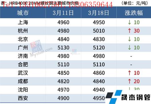 截至3月18日,全國主要城市20mm三級抗震螺紋鋼均價4955元/噸,周環比上漲3元/噸;8.0mmHPB300高線均價5162元/噸,周環比下跌2元/噸。