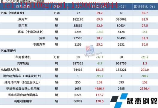 免責聲明:本網站(山東聊城晟杰無縫鋼管廠m.82912.cn)刊載的“海關總署:2月中國出口汽車22萬輛,同比增59.2%”等均源于網絡,版權歸原作者所有,且僅代表原作者觀點,本文所載信息僅供參考。轉載僅為學習與交流之目的,如無意中侵犯您的合法權益,請及時聯系刪除。本網站刊登此篇文章并不意味著本站贊同其觀點或證實其內容的真實性,我們不對其科學性、嚴肅性等作任何形式的保證。如果侵犯了您的版權,請盡快聯系我們予以撤銷,謝謝合作!