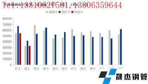 海關(guān)總署數(shù)據(jù)顯示:2022年2月我國(guó)涂層板(帶)出口總量共計(jì)33.26萬(wàn)噸,月環(huán)比降幅39.36%,年同比下降21.15%。2022年1-2月我國(guó)涂層板(帶)出口總量共計(jì)88.0991萬(wàn)噸,年同比下降19.51%。