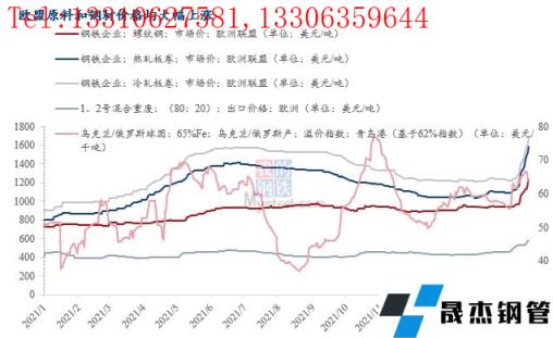 西班牙很多無縫厚壁鋼管廠家在年初已經表示無法承受高昂的能源成本,被迫降低產量。俄烏沖突雪上加霜使安賽樂米塔爾于2021年底開始減產,3月初又停止了其煉無縫厚壁鋼管廠家和 Gijon生產基地約一半的設備5天(大概生產450 萬噸鐵水/年)。該公司于3月8日停止了在奧拉貝里亞 (Olaberria)最大的電弧爐(245 萬噸/年)。3月9日,不銹鋼制造商 Acerinox 減少了110萬噸/年的產量。西班牙無縫厚壁鋼管廠家 Megasa(300 萬噸/年產能)、Grupo Celsa(250 萬噸/年)和 Siderurgica Balboa(130 萬噸/年)也已經開始減產或停產。但本周西班牙的一些無縫厚壁鋼管廠家面臨不斷提高的成品鋼價格,決定重新啟動生產并立即大幅提高了報價。截至3月18日,歐盟螺紋鋼市場價1230美元/噸,環比3月1日上漲30.85%,同比增長58.71%;熱軋板卷市場價1585美元/噸,環比3月1日上漲46.08%,同比增長69.88%。