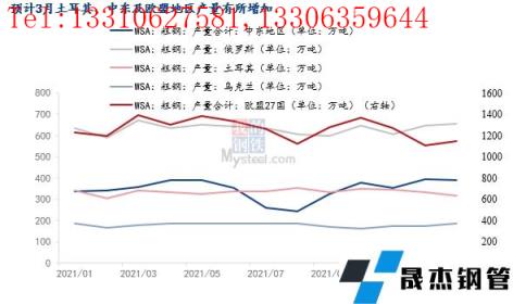在年初能源價格飆升時期,歐洲無縫厚壁鋼管廠家因成本過高而被動停減產已初見端倪。俄烏沖突導致能源和煉鋼原材料價格進一步增加,疊加鋼坯出口減少,使得高度依賴俄羅斯鋼坯的中歐和西歐國家的軋無縫厚壁鋼管廠家的生產難以維系。但對大多數綜合性無縫厚壁鋼管廠家來說,俄烏沖突發生后引發全球半成品和成品鋼供應鏈的問題直接導致價格的連續上漲,抵消了大部分原材料的上漲,多數歐洲無縫厚壁鋼管廠家仍然能保證其鋼鐵生產利潤,土耳其、印度和中東地區的無縫厚壁鋼管廠家尤其是高爐廠生產利潤甚至有所擴大,這提振了無縫厚壁鋼管廠家的生產積極性,因此預計全球除了烏克蘭的粗鋼產量在3月份實際減少不會很多,甚至在局部地區會有明顯增加。