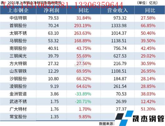 免責聲明:本網站(山東聊城晟杰無縫鋼管廠m.82912.cn)刊載的“14家上市鋼企2021年實現凈利超410億元”等均源于網絡,版權歸原作者所有,且僅代表原作者觀點,本文所載信息僅供參考。轉載僅為學習與交流之目的,如無意中侵犯您的合法權益,請及時聯系刪除。本網站刊登此篇文章并不意味著本站贊同其觀點或證實其內容的真實性,我們不對其科學性、嚴肅性等作任何形式的保證。如果侵犯了您的版權,請盡快聯系我們予以撤銷,謝謝合作!