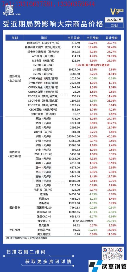 免責聲明:本網站(山東聊城晟杰無縫鋼管廠m.82912.cn)刊載的“受近期局勢影響大宗商品價格一覽表(3月23日)”等均源于網絡,版權歸原作者所有,且僅代表原作者觀點,本文所載信息僅供參考。轉載僅為學習與交流之目的,如無意中侵犯您的合法權益,請及時聯系刪除。本網站刊登此篇文章并不意味著本站贊同其觀點或證實其內容的真實性,我們不對其科學性、嚴肅性等作任何形式的保證。如果侵犯了您的版權,請盡快聯系我們予以撤銷,謝謝合作!