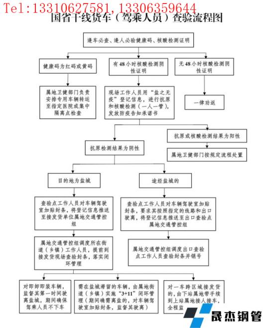 就當前嚴峻的疫情防控需要,鹽城市內各公路查驗點迅速地全面啟動疫情防控通道查驗工作,凡是進入車輛,“逢車必查,逢人必驗”,并就此出臺了高速公路、國省干線貨車查驗管理的詳細細則。由此,鹽城市各厚壁無縫鋼管市場及碼頭港口貨物運輸受到管制,筆記就部分商戶做簡單了解,針對近期情況做簡單匯總。