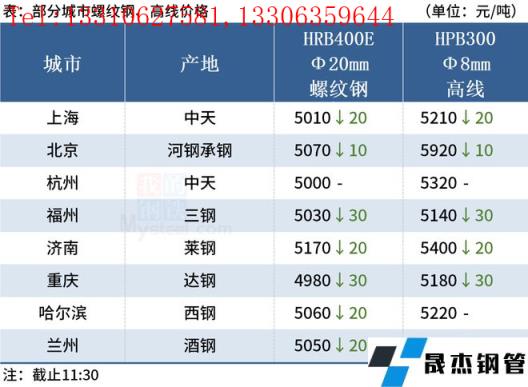 ◎濟南:7日早盤建材市場價格跌20。萊鋼螺紋5100,永鋒、石橫螺紋5100,永鋒、石橫盤螺5400。(單位:元/噸)
