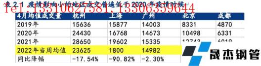 自3月中旬以來,受上海、江蘇、山東等地疫情封控影響,下游工地施工節(jié)奏大幅放緩。華東地區(qū)螺紋鋼表觀消費量3月中旬為156萬噸/周,4月中旬僅119萬噸/周,下降了23%。若長三角疫情在5月上旬得到控制,復工復產逐步有序恢復。我們根據歷史經驗和今年的需求特點,推演認為螺紋周均表需(鋼聯(lián)口徑)有望達到340-350萬噸/周。而其他受疫情影響較小的地區(qū),社庫去庫速率緩慢,成交低于2020年同期,實際厚壁無縫鋼管需求不容樂觀,疫情結束后這些地區(qū)為需求帶來的增量有限。
