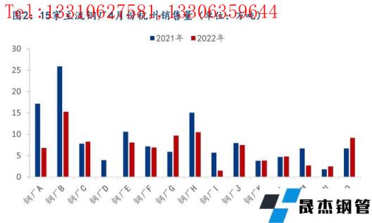 2、15家主導無縫厚壁鋼管廠家4月在杭銷售量為97.7萬噸,較發貨量相比增加4.4萬噸。清明小長假過后,杭州市場下游需求不斷釋放,上半個月碼頭出庫量逐步改善,不斷朝去年同期水平靠近。但下半個月受杭州疫情影響,部分區域工地停工、碼頭停止作業,整體需求下滑明顯,全月需求依然低于市場預期水平。