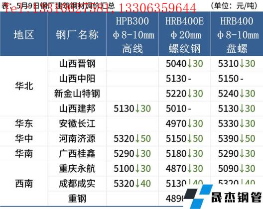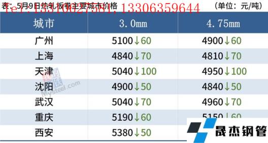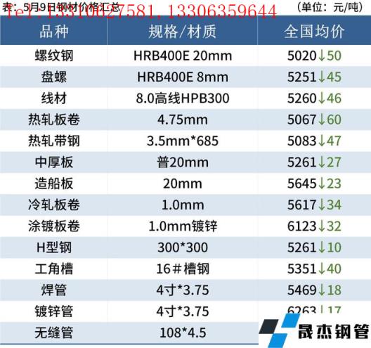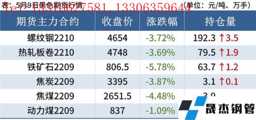 5月9日,國內厚壁無縫鋼管市場價格全線下跌,唐山普方坯出廠價跌30報4680元/噸。9日黑色期貨全線重挫,市場恐慌情緒蔓延,交投氛圍冷清,商家拋售情緒濃。