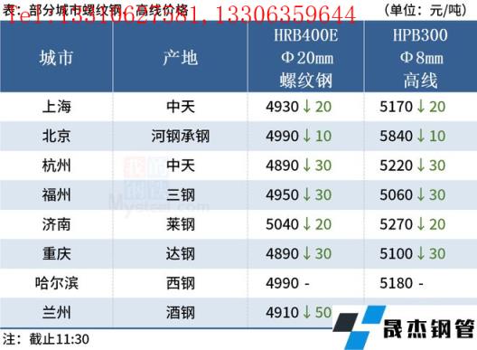 ◎上海:10日早盤建材市場價格下跌10-20。現螺紋4860-4900,西城抗震4900,其他4720-4770,興鑫抗震4780,聯鑫黃海抗震4790,盤螺5050-5180,高線亞新4990。(單位:元/噸)