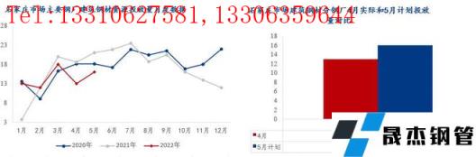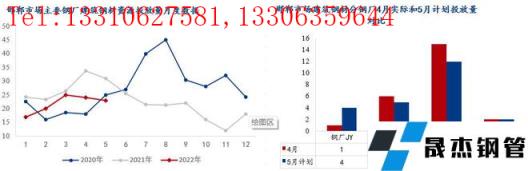 5月無縫厚壁鋼管廠家對京津冀區域投放量環比增加32.16萬噸,同比減少13.71萬噸。雖然無縫厚壁鋼管廠家生產成本高位,但產線復產的情況增加,具體來看:1、河鋼承鋼兩螺一線在產,對京津冀投放量4月份22.5萬噸,5月份計劃22.5萬噸;2、河鋼樂鋼兩條螺紋產線在產,4月唐山封城,資源主要對唐山本地投放,4月份合計13萬噸,5月份計劃投放13萬噸;3、敬業無縫厚壁鋼管廠家6條螺紋產線在產,加上烏鋼資源流入,4月對京津冀投放量約43萬噸,5月計劃57.8萬噸;4、東華無縫厚壁鋼管廠家螺紋產線復產,5月計劃投放10.19萬噸;5、鑫達一條螺紋產線不飽和生產,4月京津冀僅投放6.5萬,5月份計劃投放10萬噸;6、4月建龍系無縫厚壁鋼管廠家對京津市場投放13.4萬噸左右,5月份計劃16萬噸左右,其中新撫鋼最多。