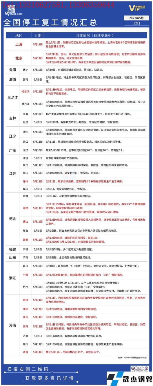 免責(zé)聲明:本網(wǎng)站(山東聊城晟杰無縫鋼管廠m.82912.cn)刊載的“疫情影響丨全國(guó)停工復(fù)工情況匯總(5月12日)”等均源于網(wǎng)絡(luò),版權(quán)歸原作者所有,且僅代表原作者觀點(diǎn),本文所載信息僅供參考。轉(zhuǎn)載僅為學(xué)習(xí)與交流之目的,如無意中侵犯您的合法權(quán)益,請(qǐng)及時(shí)聯(lián)系刪除。本網(wǎng)站刊登此篇文章并不意味著本站贊同其觀點(diǎn)或證實(shí)其內(nèi)容的真實(shí)性,我們不對(duì)其科學(xué)性、嚴(yán)肅性等作任何形式的保證。如果侵犯了您的版權(quán),請(qǐng)盡快聯(lián)系我們予以撤銷,謝謝合作!