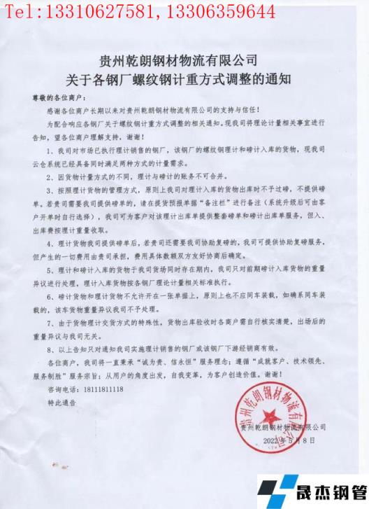 免責(zé)聲明:本網(wǎng)站(山東聊城晟杰無縫鋼管廠m.82912.cn)刊載的“貴州乾朗鋼材_無縫鋼管物流有限公司關(guān)于各無縫鋼管廠家螺紋鋼計重方式調(diào)整的通知”等均源于網(wǎng)絡(luò),版權(quán)歸原作者所有,且僅代表原作者觀點,本文所載信息僅供參考。轉(zhuǎn)載僅為學(xué)習(xí)與交流之目的,如無意中侵犯您的合法權(quán)益,請及時聯(lián)系刪除。本網(wǎng)站刊登此篇文章并不意味著本站贊同其觀點或證實其內(nèi)容的真實性,我們不對其科學(xué)性、嚴(yán)肅性等作任何形式的保證。如果侵犯了您的版權(quán),請盡快聯(lián)系我們予以撤銷,謝謝合作!