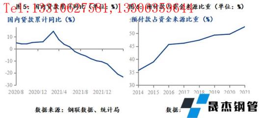 2020年8月,監(jiān)管層設(shè)置“三道紅線”的監(jiān)管指標(biāo),對房企進(jìn)行分檔管理,限制其有息負(fù)債擴(kuò)張速度;2021年1月,央行、銀保監(jiān)會建立房地產(chǎn)貸款集中度管理制度,對銀行業(yè)金融進(jìn)行管理制度,限制銀行資金過度流入地產(chǎn)行業(yè)。三道紅線及貸款集中制,限制了房地產(chǎn)企業(yè)表內(nèi)融資能力,這兩個政策在2022年2月開始對地產(chǎn)市場產(chǎn)生沖擊,國內(nèi)貸款同比自14.4%的高位持續(xù)回落,延續(xù)至今。至此,房地產(chǎn)企業(yè)的表外融資渠道、表內(nèi)融資渠道都有較大限制,房地產(chǎn)資金短缺問題成為重要的麻煩。但此階段,房地產(chǎn)企業(yè)尚未出現(xiàn)大的危機(jī),主要得益于房價上漲預(yù)期仍在,地產(chǎn)銷售偏好,預(yù)售資金來源尚能支撐地產(chǎn)企業(yè)運(yùn)行。