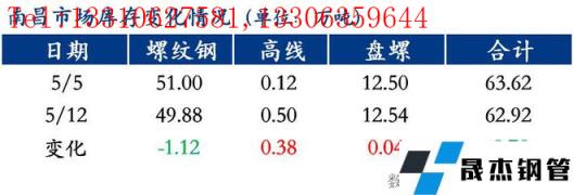綜合來看,供應方面,由于江西建筑厚壁無縫鋼管市場價格位居全國較低水平,5月份省內部分無縫厚壁鋼管廠家對南昌地區合同量執行8折兌現且外省資源到貨維持低位。需求方面,宏觀層面利好消息的陸續傳出一定程度上提振了市場信心,終端采購需求雖稍有好轉,但伴隨著疫情的反復影響,需求端整體表現多顯低迷,商家心態多偏謹慎。但筆者認為疫情的影響終逐漸散去,疊加重大建設項目的陸續推進,下游采購需求雖然推持但不會缺席綜上。然而五一過后,南方地區逐漸進入汛期,或對工地施工造成一定的不利影響。綜上,初步預計下周江西省建筑厚壁無縫鋼管市場庫存或將繼續小幅下降。