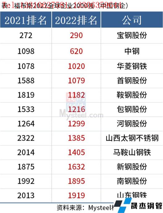 免責聲明:本網站(山東聊城晟杰無縫鋼管廠m.82912.cn)刊載的“中國12家鋼企上榜福布斯2022全球企業2000強”等均源于網絡,版權歸原作者所有,且僅代表原作者觀點,本文所載信息僅供參考。轉載僅為學習與交流之目的,如無意中侵犯您的合法權益,請及時聯系刪除。本網站刊登此篇文章并不意味著本站贊同其觀點或證實其內容的真實性,我們不對其科學性、嚴肅性等作任何形式的保證。如果侵犯了您的版權,請盡快聯系我們予以撤銷,謝謝合作!