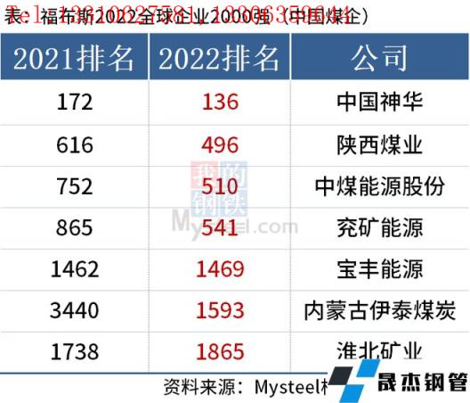 免責聲明:本網站(山東聊城晟杰無縫鋼管廠m.82912.cn)刊載的“中國7家煤企上榜福布斯2022全球企業2000強”等均源于網絡,版權歸原作者所有,且僅代表原作者觀點,本文所載信息僅供參考。轉載僅為學習與交流之目的,如無意中侵犯您的合法權益,請及時聯系刪除。本網站刊登此篇文章并不意味著本站贊同其觀點或證實其內容的真實性,我們不對其科學性、嚴肅性等作任何形式的保證。如果侵犯了您的版權,請盡快聯系我們予以撤銷,謝謝合作!