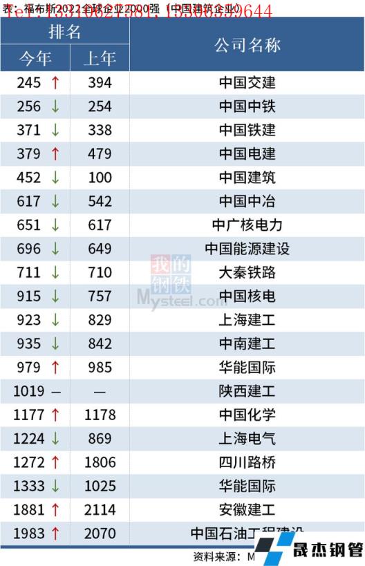免責聲明:本網站(山東聊城晟杰無縫鋼管廠m.82912.cn)刊載的“中國20家建筑企業上榜福布斯2022全球企業2000強”等均源于網絡,版權歸原作者所有,且僅代表原作者觀點,本文所載信息僅供參考。轉載僅為學習與交流之目的,如無意中侵犯您的合法權益,請及時聯系刪除。本網站刊登此篇文章并不意味著本站贊同其觀點或證實其內容的真實性,我們不對其科學性、嚴肅性等作任何形式的保證。如果侵犯了您的版權,請盡快聯系我們予以撤銷,謝謝合作!