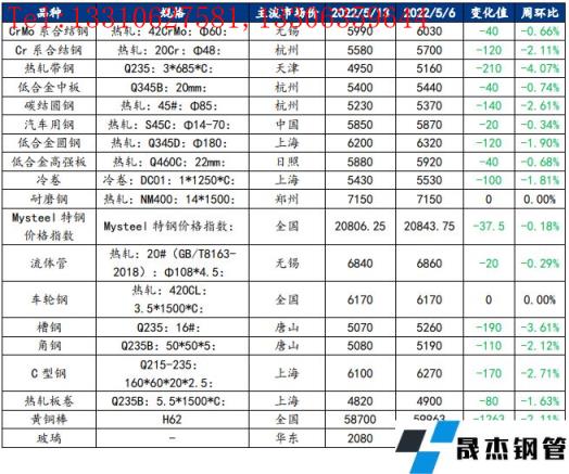 截止2022年5月13日,各原材料當日即時價格以及價格周環(huán)比情況如下: