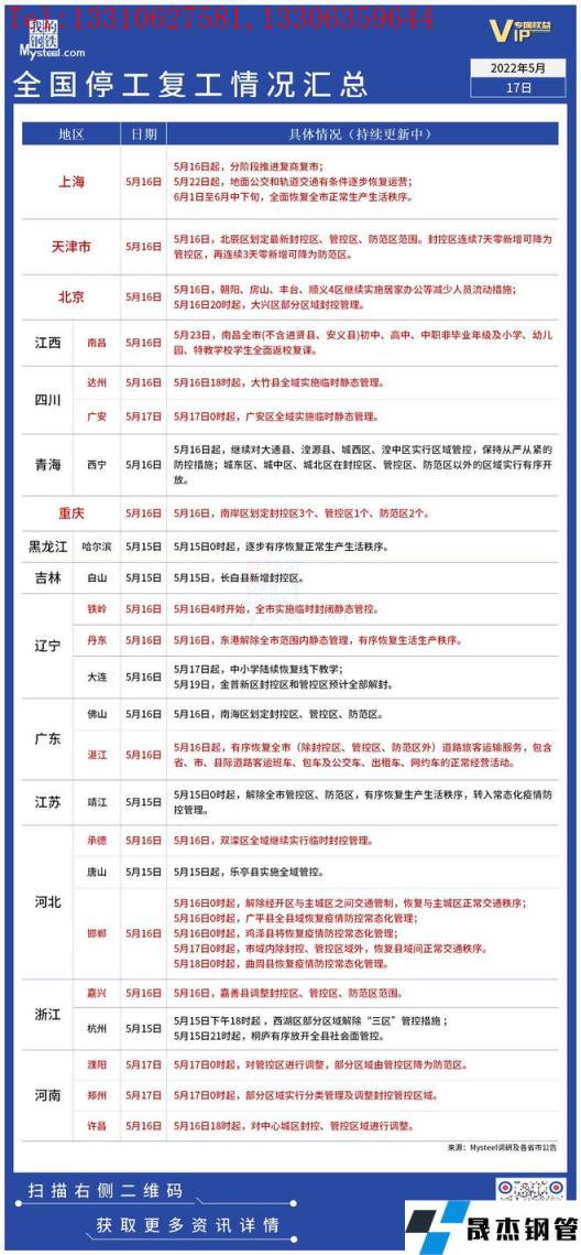 免責聲明:本網站(山東聊城晟杰無縫鋼管廠m.82912.cn)刊載的“疫情影響丨全國停工復工情況匯總(5月17日)”等均源于網絡,版權歸原作者所有,且僅代表原作者觀點,本文所載信息僅供參考。轉載僅為學習與交流之目的,如無意中侵犯您的合法權益,請及時聯系刪除。本網站刊登此篇文章并不意味著本站贊同其觀點或證實其內容的真實性,我們不對其科學性、嚴肅性等作任何形式的保證。如果侵犯了您的版權,請盡快聯系我們予以撤銷,謝謝合作!