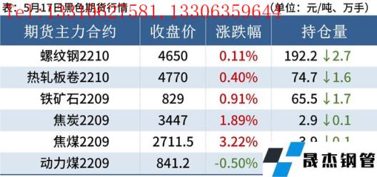 熱軋板卷:5月17日,全國(guó)24個(gè)主要城市4.75mm熱軋板卷均價(jià)5013元/噸,較上個(gè)交易日持平。現(xiàn)貨市場(chǎng)基本處于觀望狀態(tài),不急于拿貨,市場(chǎng)整體成交情況較弱,盤(pán)面全日震蕩運(yùn)行,午后部分市場(chǎng)有小幅下跌。供需角度來(lái)看,近期熱卷供應(yīng)已經(jīng)基本恢復(fù)正常,需求方面受盤(pán)面觸底反彈影響,部分投機(jī)商戶小批量備貨,但終端需求依然不佳,雖然前期部分延遲需求逐步釋放,但同比依然處于低位。綜合來(lái)看,預(yù)計(jì)近期全國(guó)熱軋板卷價(jià)格弱勢(shì)震蕩運(yùn)行為主。