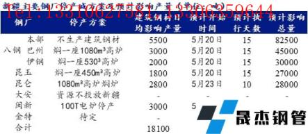 根據(jù)初步減限產(chǎn)方案,八鋼本部4座高爐全開,但不生產(chǎn)建筑厚壁無縫鋼管,預(yù)計影響建筑厚壁無縫鋼管產(chǎn)量5500噸/日,巴州和伊鋼基地各燜一座高爐,預(yù)計影響建筑厚壁無縫鋼管產(chǎn)量分別為3000噸/日和2000噸/日;昆玉燜一座高爐,預(yù)計影響建筑厚壁無縫鋼管產(chǎn)量1800噸/日;昆侖和閩新無縫厚壁鋼管廠家建筑厚壁無縫鋼管停產(chǎn)十天,預(yù)計分別影響建筑厚壁無縫鋼管產(chǎn)量2800噸/日和3000噸/日;大安鋼鐵資源暫不投往新疆區(qū)域;金特待定。