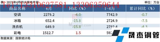 免責聲明:本網站(山東聊城晟杰無縫鋼管廠m.82912.cn)刊載的“統計局:4月中國四大家電產量3降1增”等均源于網絡,版權歸原作者所有,且僅代表原作者觀點,本文所載信息僅供參考。轉載僅為學習與交流之目的,如無意中侵犯您的合法權益,請及時聯系刪除。本網站刊登此篇文章并不意味著本站贊同其觀點或證實其內容的真實性,我們不對其科學性、嚴肅性等作任何形式的保證。如果侵犯了您的版權,請盡快聯系我們予以撤銷,謝謝合作!