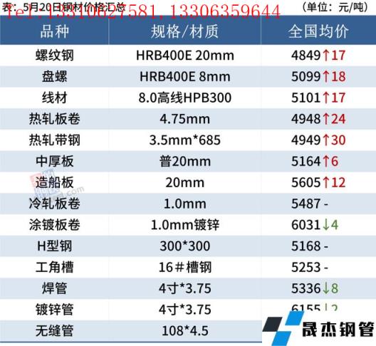 建筑厚壁無縫鋼管:5月20日,全國31個主要城市20mm三級抗震螺紋鋼均價4849元/噸,較上個交易日漲17元/噸。短期來看,近期供應受利潤倒掛明顯減量,表觀消費也未有明顯改善。但隨著疫情情況改善,市場心態好轉,在情緒面驅動下,預計下周國內建筑厚壁無縫鋼管價格或將呈現震蕩偏強態勢。