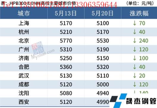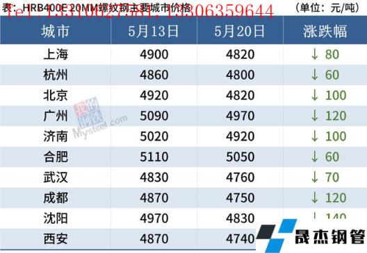 據監(jiān)測,截至5月20日,全國主要城市20mm三級抗震螺紋鋼均價4849元/噸,較5月13日下跌107元/噸;8.0mmHPB300高線均價5101/噸,較5月7日下跌104元/噸。