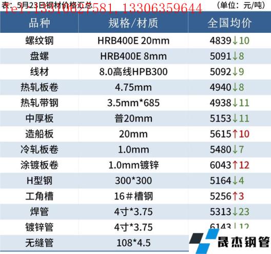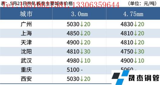熱軋板卷:5月23日,全國24個主要城市4.75mm熱軋板卷均價4940元/噸,較上個交易日下跌8元/噸。5月22日,市場突傳印度將針對鐵礦石及部分鋼鐵產品大幅提高出口關稅,市場情緒得到回暖,盤面下方支撐增強。隨著經濟下行壓力增大,政策面暖風頻吹,5月5年期LPR下調15個基點,降低購房者置業成本、提高購房者置業意愿的同時,進一步提振了市場信心,預計后期地產方面將持續出臺利好政策。但由于疫情的影響,其對需求的制約依然明顯,厚壁無縫鋼管的現實需求短期難有明顯增量。因此,24日全國熱軋板卷仍呈現持穩或小幅波動的態勢。
