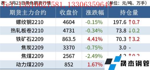 焦炭:5月23日,焦炭市場暫穩運行。焦企大多開工穩定,市場情緒逐漸回暖,貿易商逐步接貨,部分焦企廠內庫存快速下降,焦炭庫存低位運行,焦企已無多余利潤且部分陷入虧損,抵觸焦炭降價情緒增加。無縫厚壁鋼管廠家方面,目前以按需采購為主,厚壁無縫鋼管走貨仍無好轉。短期內焦炭市場暫穩運行,后期需繼續關注疫情影響、原料成本、成材利潤對焦炭價格的影響。