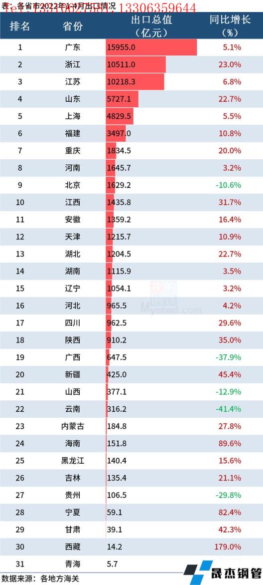 免責聲明:本網站(山東聊城晟杰無縫鋼管廠m.82912.cn)刊載的“前4月全國分省市外貿數據出爐,19地出口增速超10%”等均源于網絡,版權歸原作者所有,且僅代表原作者觀點,本文所載信息僅供參考。轉載僅為學習與交流之目的,如無意中侵犯您的合法權益,請及時聯系刪除。本網站刊登此篇文章并不意味著本站贊同其觀點或證實其內容的真實性,我們不對其科學性、嚴肅性等作任何形式的保證。如果侵犯了您的版權,請盡快聯系我們予以撤銷,謝謝合作!