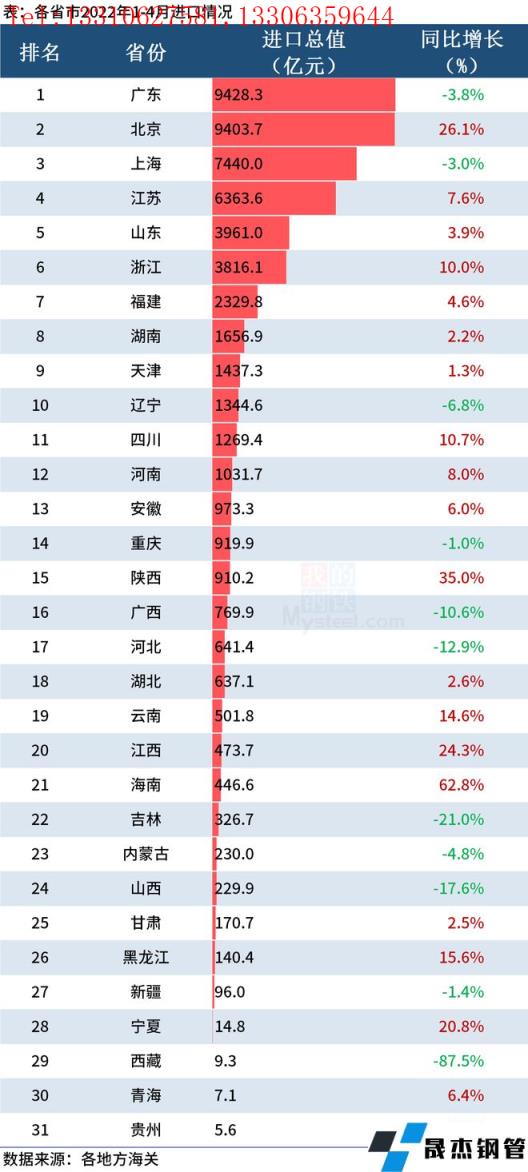 各省市2022年1-4月進口情況