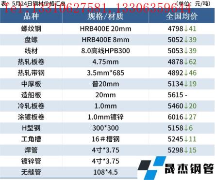 熱軋板卷:5月24日,全國(guó)24個(gè)主要城市4.75mm熱軋板卷均價(jià)4878元/噸,較上個(gè)交易日下跌62元/噸。黑色商品期貨市場(chǎng)震蕩下行,現(xiàn)貨價(jià)格延續(xù)跌勢(shì),整日成交冷清。整體來(lái)看,近期的熱卷需求仍然不佳,近期疫情有所好轉(zhuǎn),運(yùn)輸?shù)扔幸欢ǔ潭然謴?fù)。雖然本周開(kāi)始產(chǎn)量開(kāi)始有所縮減,但受市場(chǎng)表需求趨弱影響或?qū)⒗^續(xù)承壓。預(yù)計(jì)25日熱卷市場(chǎng)或?qū)⒗^續(xù)維持震蕩磨底,深跌可能性不大。