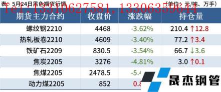 5月24日,國(guó)內(nèi)厚壁無(wú)縫鋼管市場(chǎng)價(jià)格跌幅擴(kuò)大,唐山普方坯出廠價(jià)跌70報(bào)4470元/噸。黑色期貨市場(chǎng)大幅下跌,市場(chǎng)需求疲弱,商家以降價(jià)出貨為主,市場(chǎng)成交清淡。