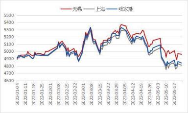 從資源量來看,無錫市場資源量整體來看是處于下降態(tài)勢的,而周邊蘇州玖隆庫的資源量從年初的十幾萬噸一直上升到5月初的歷年高峰64萬噸,從5月份蘇州解封以來,面臨爆倉的玖隆庫才逐漸降庫,調(diào)研5月25號玖隆庫存在53萬噸,一個月內(nèi)降了有11萬噸,從沙鋼的降庫資源流向來看,主要分布在揚州、鎮(zhèn)江、蘇州、常州各地,本地?zé)o錫市場有商戶近期訂單也增加了不少沙鋼資源,后續(xù)資源可能也面臨累庫的風(fēng)險。