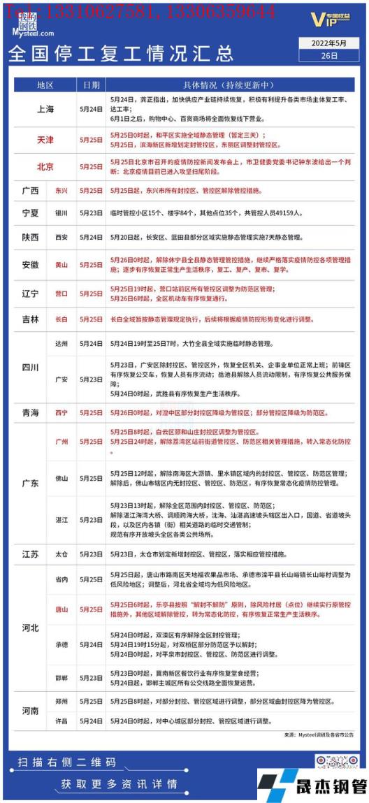 免責聲明:本網站(山東聊城晟杰無縫鋼管廠m.82912.cn)刊載的“疫情影響丨全國停工復工情況匯總(5月26日)”等均源于網絡,版權歸原作者所有,且僅代表原作者觀點,本文所載信息僅供參考。轉載僅為學習與交流之目的,如無意中侵犯您的合法權益,請及時聯系刪除。本網站刊登此篇文章并不意味著本站贊同其觀點或證實其內容的真實性,我們不對其科學性、嚴肅性等作任何形式的保證。如果侵犯了您的版權,請盡快聯系我們予以撤銷,謝謝合作!