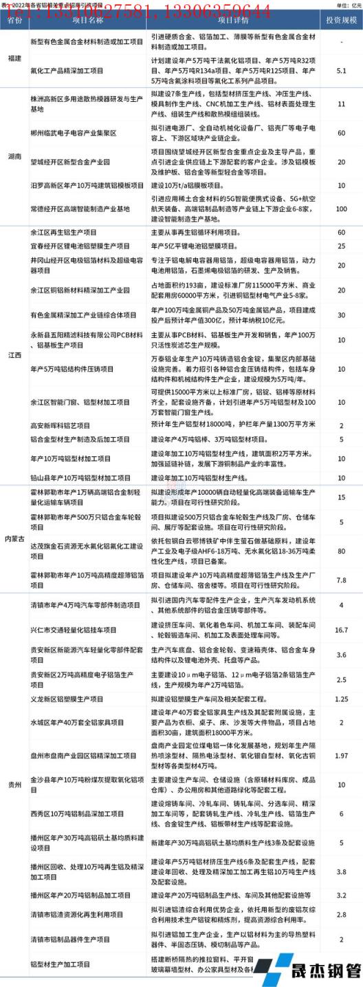 免責聲明:本網站(山東聊城晟杰無縫鋼管廠m.82912.cn)刊載的“5省2022年鋁相關重點招商項目清單出爐”等均源于網絡,版權歸原作者所有,且僅代表原作者觀點,本文所載信息僅供參考。轉載僅為學習與交流之目的,如無意中侵犯您的合法權益,請及時聯系刪除。本網站刊登此篇文章并不意味著本站贊同其觀點或證實其內容的真實性,我們不對其科學性、嚴肅性等作任何形式的保證。如果侵犯了您的版權,請盡快聯系我們予以撤銷,謝謝合作!