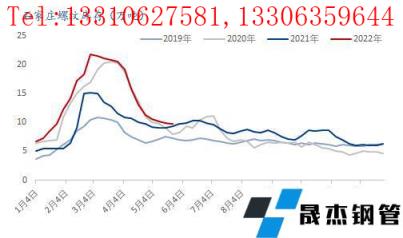近期石家莊地區(qū)建筑厚壁無縫鋼管價格跌幅相對較大,主要是由于前期價格持續(xù)堅挺,近期受到周邊市場低價的沖擊,以及期貨持續(xù)偏弱運行,出貨情況不理解,因此商家心態(tài)略顯悲觀,價格下跌較快,當前價格和北京的價差近期持續(xù)收窄。三、資源供應仍相對偏少雖然近期無縫厚壁鋼管廠家螺紋鋼產(chǎn)能利用率達到今年以來的高點,但與前幾年同期水平相比,仍處于偏低水平,尤其是疫情的反復,以及部分無縫厚壁鋼管廠家螺紋、板材間的鐵水切換等因素影響,后期產(chǎn)量增加不會很大,因此供給壓力不會太大。