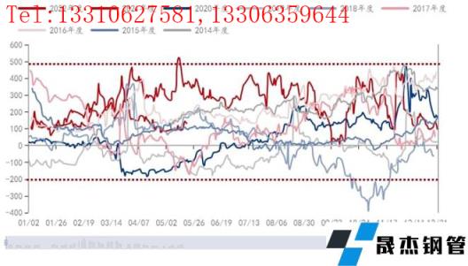 第三階段,2021年5月-2021年9月(卷螺差高位震蕩),貫徹實施碳達峰、碳中和目標,無縫厚壁鋼管廠家供給收縮,其中建筑厚壁無縫鋼管供應缺口大于熱軋卷板,螺紋鋼漲幅也大于卷板,導致卷螺差在鋼價上漲的趨勢中呈現高位震蕩。