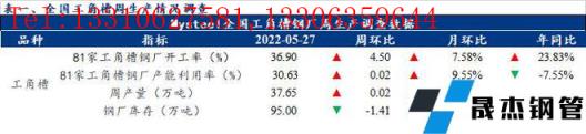 27日檢測的全國81家工角槽無縫厚壁鋼管廠家企業中,本周開工率36.9%,較上周(32.4%)增加4.4%,產能利用率為30.63%,較上周(30.61%)增加0.02%。本周全國工角槽產量37.65萬噸,較上周(37.63)增加0.02萬噸。