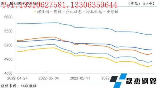 本周,五大厚壁無縫鋼管品種價格均下跌。其中,熱軋板卷價格下降最明顯,周跌幅達95元/噸。