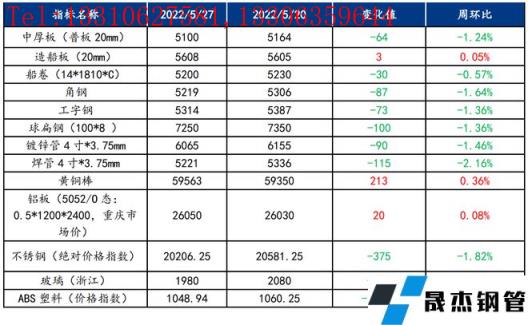 截止2022年5月27日,各原材料當(dāng)日即時(shí)價(jià)格以及價(jià)格周環(huán)比情況如下: