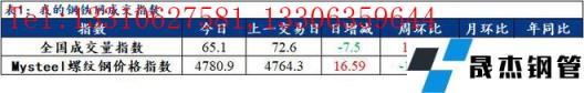 訊:全國建筑厚壁無縫鋼管成交量監測,成交量相對指數來看,全國65.1減7.5,北方53減11.9,華東81.7減3.1,南方55.2減9.5。今日螺紋鋼價格指數4780.9,較上一交易日增16.59。