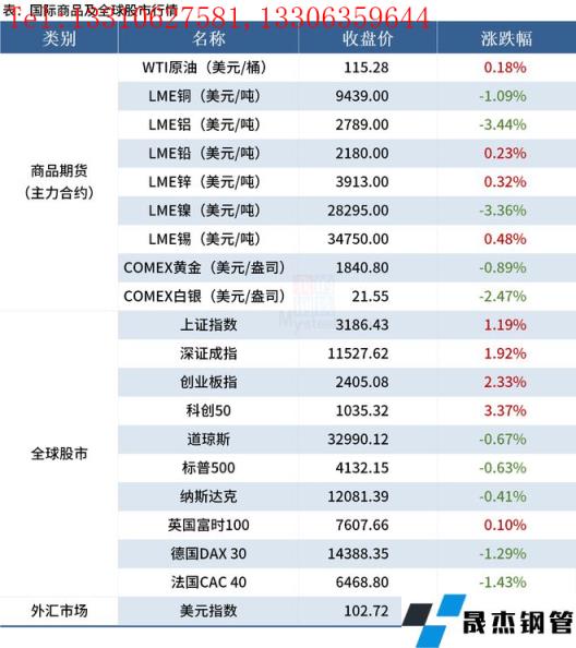◎據調研,山東地區無縫厚壁鋼管廠家表示方案明確要求2022年粗鋼全年產量不超過7650萬噸,但方案并未明確壓減產量的具體比例和幅度,最終調控目標會根據國家正式下達的調控任務再進行調整。詳情>>