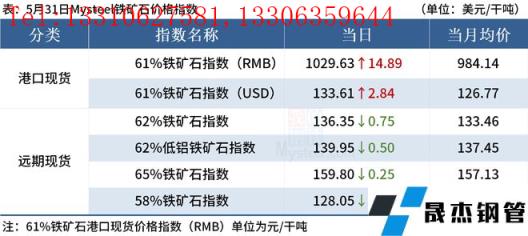 ◎5月31日,全國主港鐵礦石成交62.00萬噸,環比增51.2%;237家主流貿易商建材成交18.00萬噸,環比增17.7%。