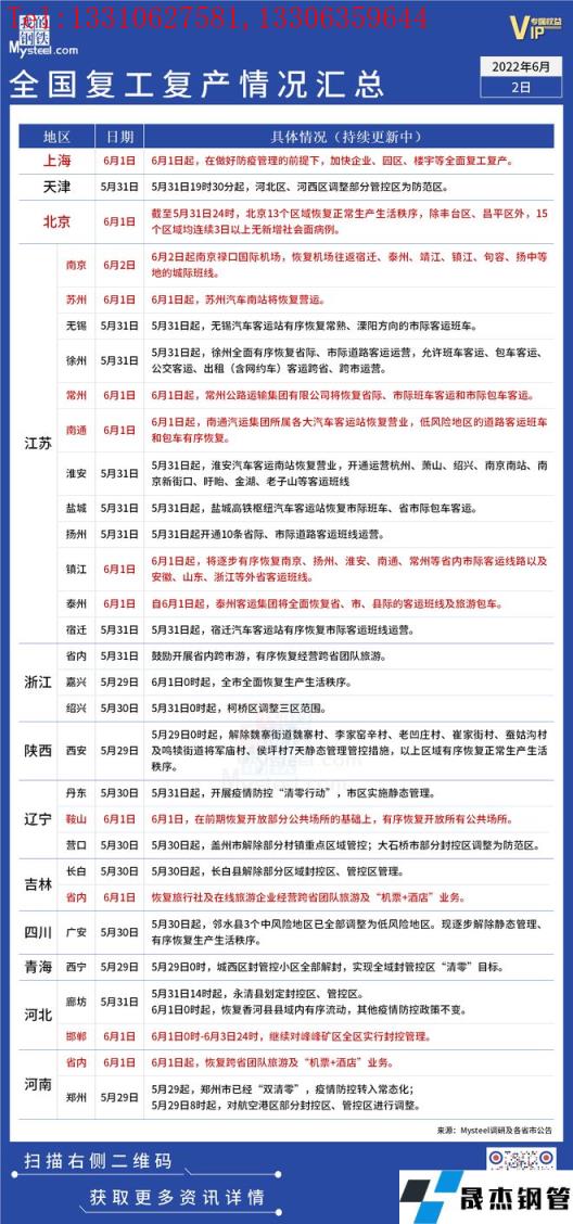免責聲明:本網站(山東聊城晟杰無縫鋼管廠m.82912.cn)刊載的“疫情影響丨全國復工復產情況匯總(6月2日)”等均源于網絡,版權歸原作者所有,且僅代表原作者觀點,本文所載信息僅供參考。轉載僅為學習與交流之目的,如無意中侵犯您的合法權益,請及時聯系刪除。本網站刊登此篇文章并不意味著本站贊同其觀點或證實其內容的真實性,我們不對其科學性、嚴肅性等作任何形式的保證。如果侵犯了您的版權,請盡快聯系我們予以撤銷,謝謝合作!