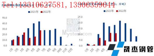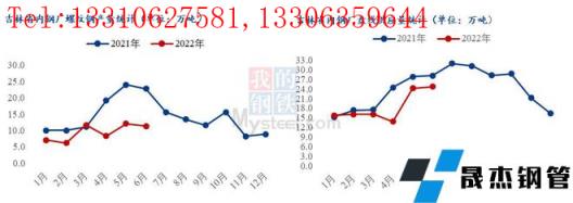 螺紋鋼方面,6月省內及省外無縫厚壁鋼管廠家對吉林省合計投放量預計27.3萬噸,月環比增加11.5萬噸,月環比上升72.4%,年同比減少15.7萬噸,年同比下降36.6%。盤線方面,6月省內及省外無縫厚壁鋼管廠家對吉林省合計投放量10.8萬噸,月環比減少0.3萬噸,月環比下降39.4%,年同比減少7萬噸,年同比下降39.4%。