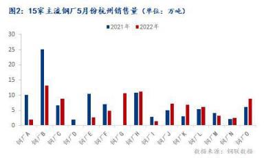2、15家主導無縫厚壁鋼管廠家5月在杭銷售量為89.6萬噸,較發貨量相比增加7.8萬噸。5月初杭州地區依然受疫情影響,市場需求受到一定壓制。中旬起隨著疫情的逐步控制,物流基本恢復正常,杭州市場下游需求不斷釋放,碼頭出庫量逐步改善,不斷朝去年同期水平靠近。