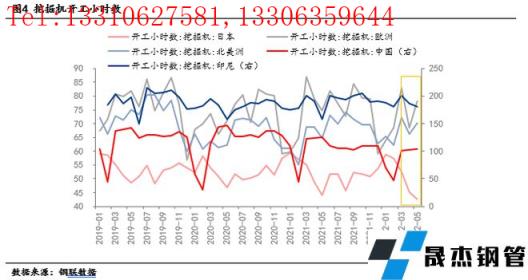 4月挖掘機出口銷量8445臺,同比增長64%,增幅較去年收窄,目前出口量占到挖掘機總銷量的40.95%,較去年同期增加22.03個百分點,出口對挖掘機銷量貢獻明顯增加。但分析來看,未來挖掘機出口銷量增長空間收窄,主要原因包括以下幾個方面:1、中國作為制造業大國,在去年疫情修復后為全球工業產品供應發揮了重要作用,目前全球制造業供應鏈逐漸恢復正常,對中國進口需求下降。2、海外市場需求轉弱,從小松挖掘機公布的各國挖掘機開工小時數來看,5月日本、印尼開工小時數均呈現環比下滑趨勢,北半球開始進入施工淡季,對挖掘機需求減弱。