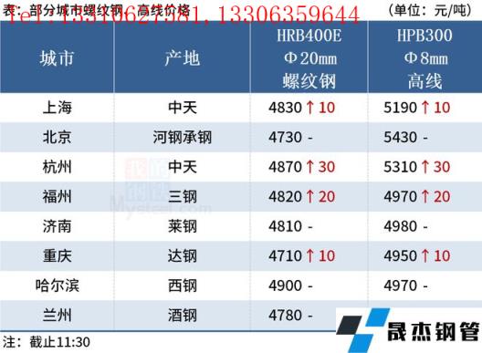 ◎上海:9日早盤建材市場價格小幅上漲10。現螺紋4760-4800,西城抗震4790,其他4630-4680,興鑫抗震4690,聯鑫黃海抗震4700,盤螺4950-5220,高線亞新4950。(單位:元/噸)